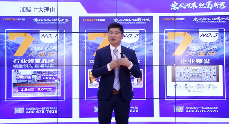峰會現場在科恩營銷副總監--陳青龍的帶領下,充分了解了科恩十三余年的輝煌發展歷程。科恩集成灶成立十三余年,專注集成灶產業,以高科技打造高品質,用高品質塑造了優秀口碑,一路走來,碩果累累,成就非凡。陳總在鏡頭前帶直播間的觀眾們參觀了科恩新門店,高端、大氣,并表示科恩未來將會無比廣闊與光明。