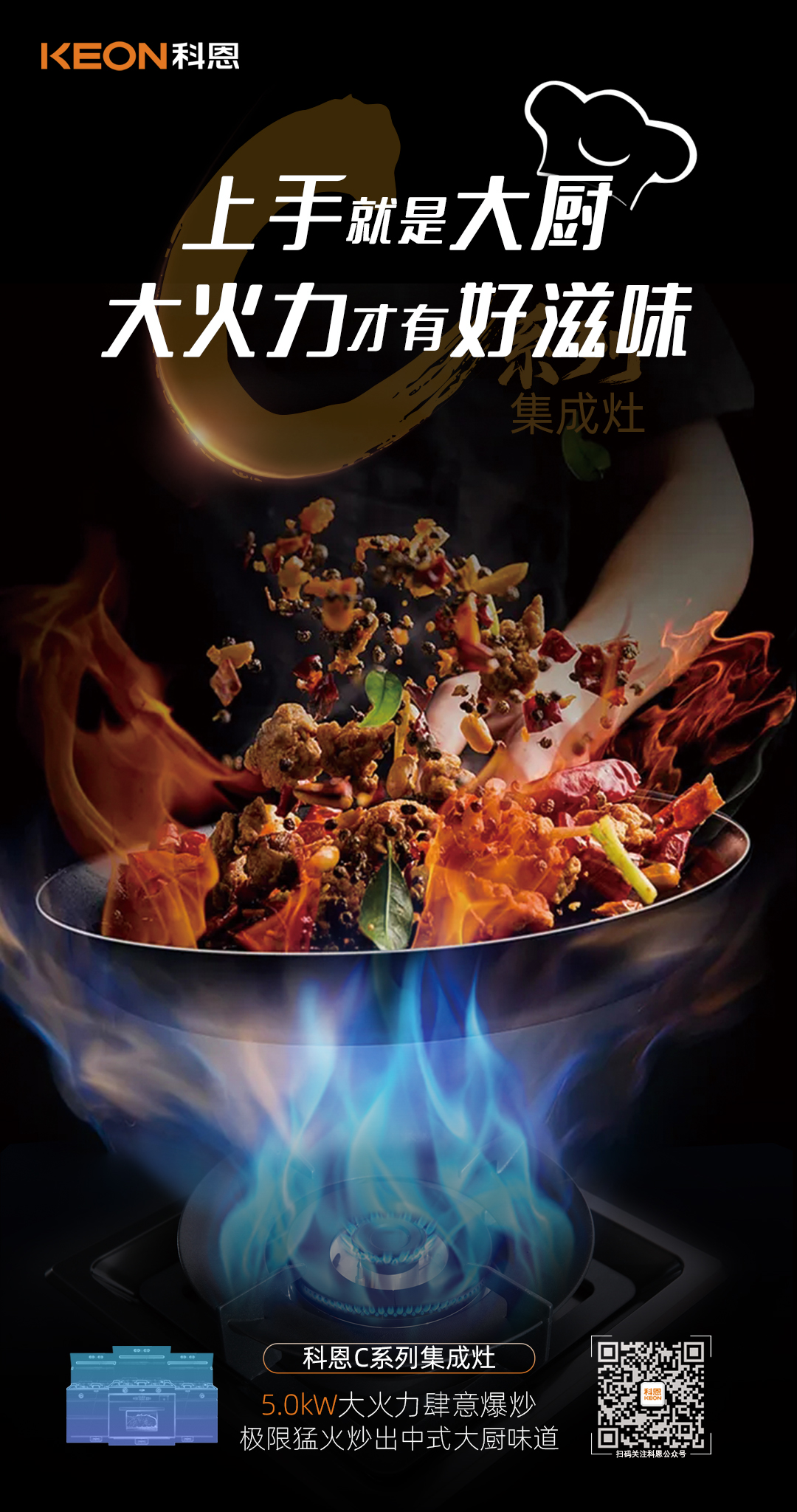 科恩C系列集成灶,5.0kW黃金大火力,輕松實(shí)現(xiàn)爆炒自由,縱情沉浸美好烹飪新體驗(yàn)!