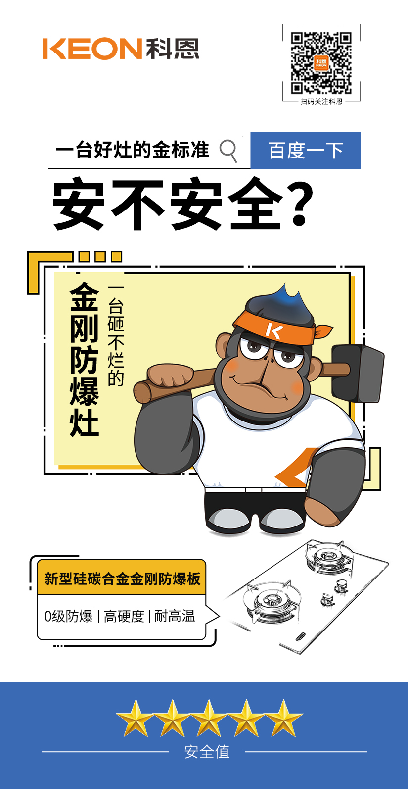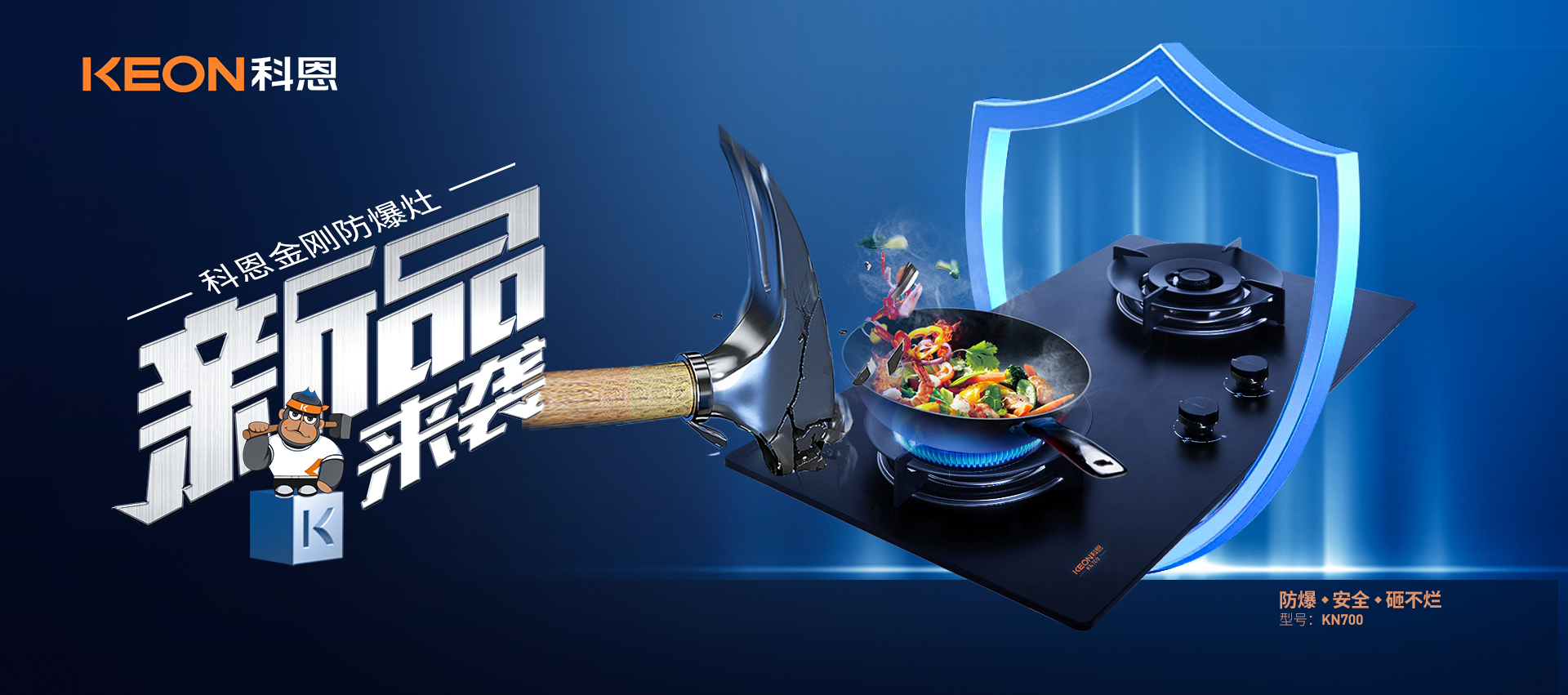 千呼萬喚始出來,一臺真正永砸不爛的金剛防爆灶!相較于市面上采用的鋼化玻璃面板,科恩采用了超細晶、高均質新型硅碳合金金剛板!更堅可不摧 ,耐熱防爆!科恩金剛防爆灶,真正做到防爆、安全、砸不爛!無懼各種極限考驗!