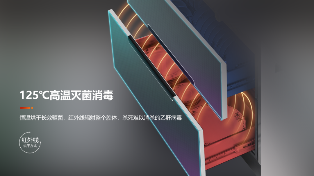 科恩C260L配有120L大容量消毒柜,采用臭氧與紫外線雙重消毒125℃雙管高溫消毒,360°循環發熱殺菌更徹底,高溫蒸發腔內水分,防止細菌滋生。持續15分鐘,125℃高溫滅菌消毒,紅外線輻射整個腔體,殺死難以消殺的乙肝病毒。真正母嬰級消毒柜,讓媽媽更放心。