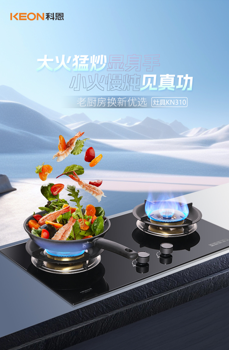 廚房煥新選對灶KN300小灶大能少折騰KN310全能適配多場景新國標一級能效硬核實力換裝不改孔超省心美味安全雙豐收老房煥新不用愁新房裝修更要優科恩KN300KN310新品將來襲匠心品質賦能三餐節能科技守護家園科恩相伴,三餐有味